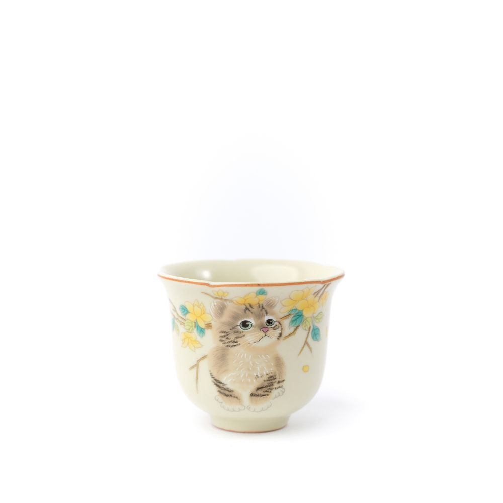 This charming ceramic tea cup features a delicate hand-painted kitten, its playful expression captured in fine detail. The soft, pastel hues of the artwork beautifully complement the creamy glaze of the cup, creating a cozy and whimsical aesthetic.